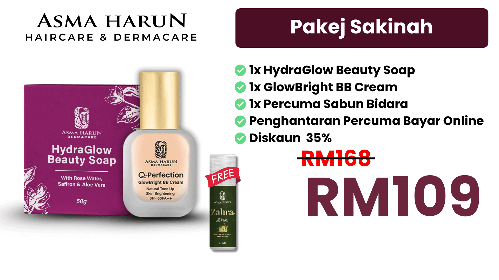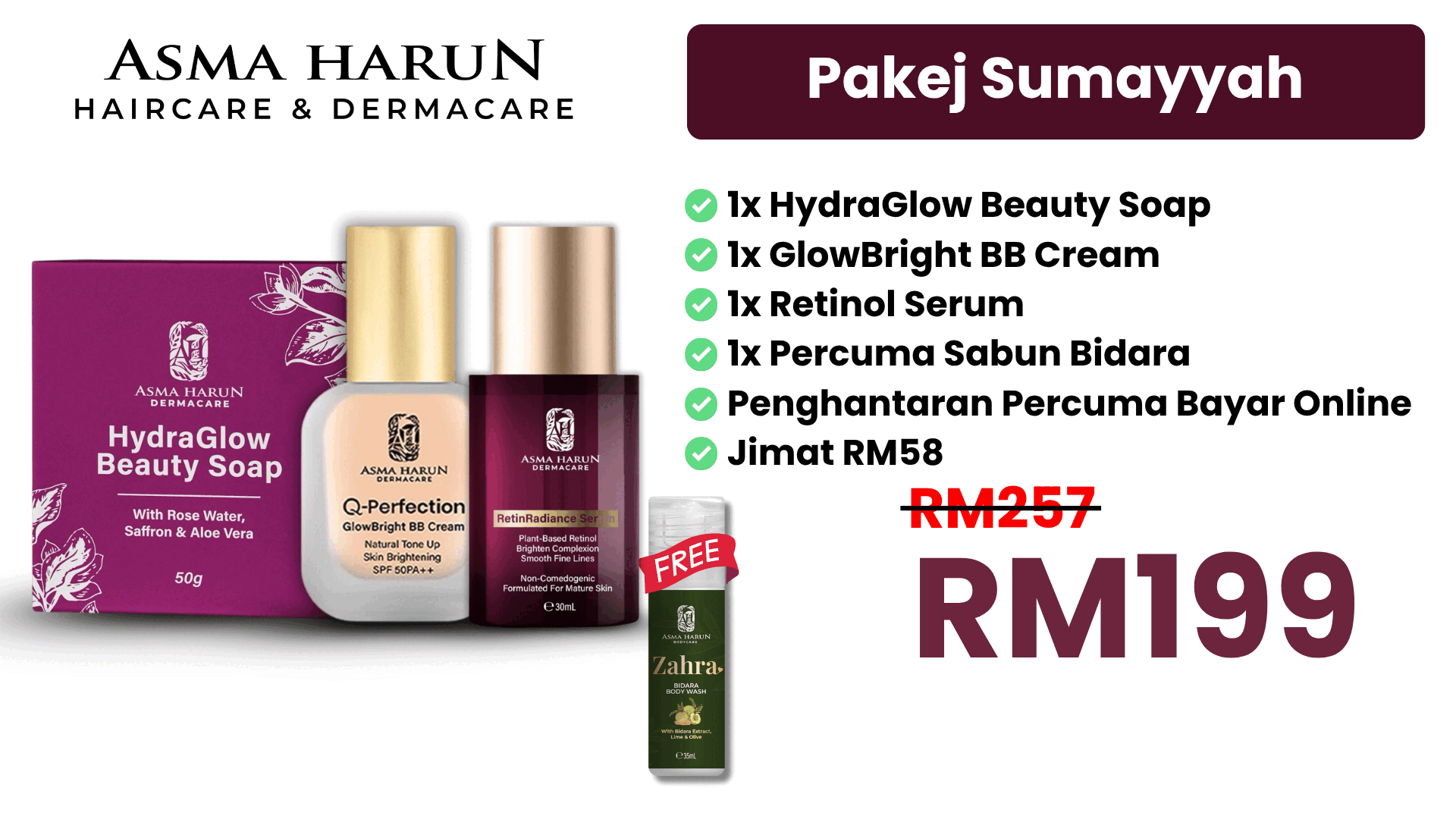 Setiap produk dalam Asma Harun Dermacare direka untuk melengkapi antara satu sama lain – dari pencuci, pelembap, serum hingga ke pelindung matahari – supaya kulit anda mendapat penjagaan menyeluruh.