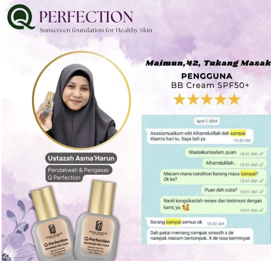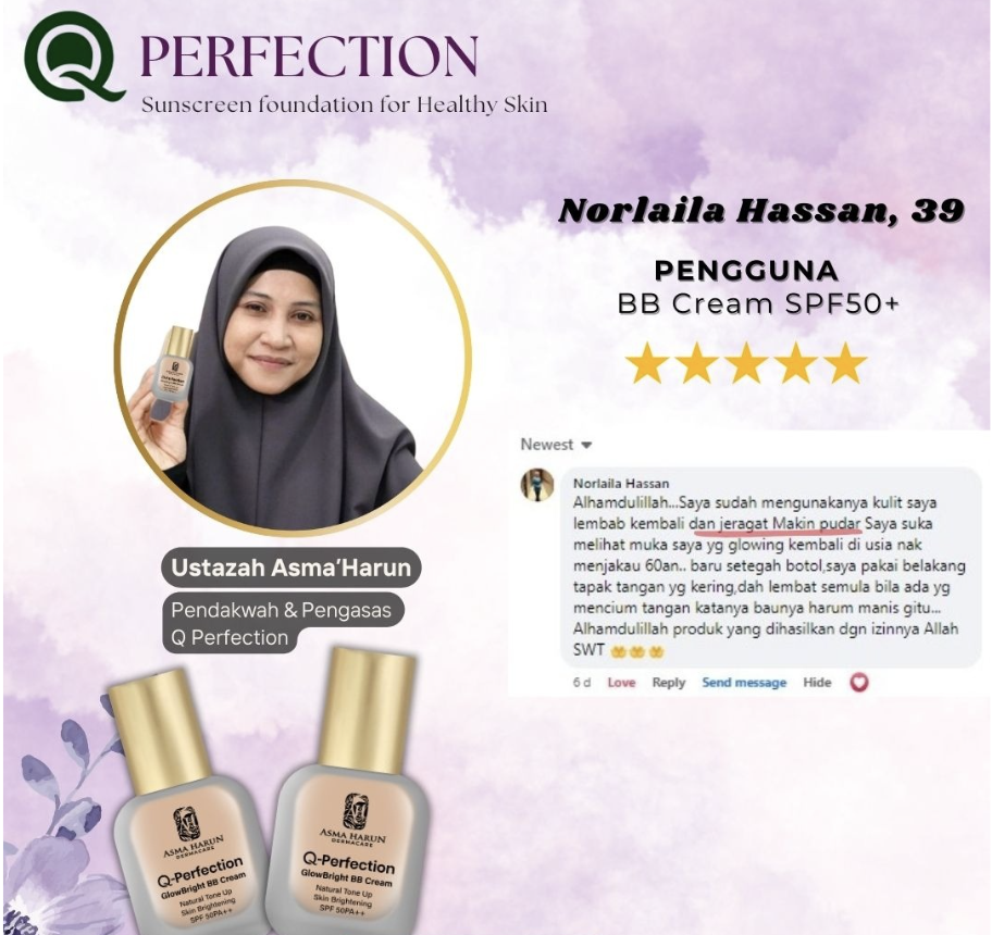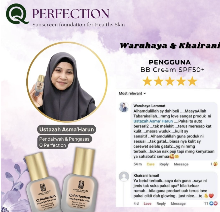 Produk ini bukan sekadar untuk dijual, tapi benar-benar menjadi ikhtiar penjagaan kulit harian Ustazah sendiri.